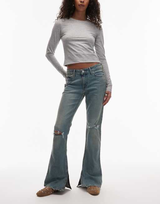 Levi's – Schmal geschnittene Bootcut-Jeans in Hellblau mit niedrigem Bund und Knierissen