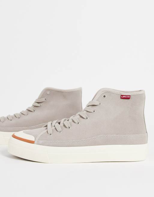 Levi's – Square – Wildleder-Sneaker in Cremeweiß mit rotem Etikett