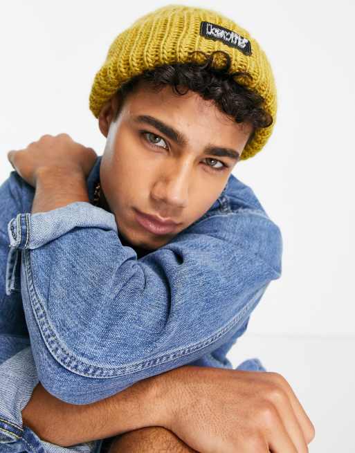 Levi's – Strickmütze in Gelb mit kleinem Logo