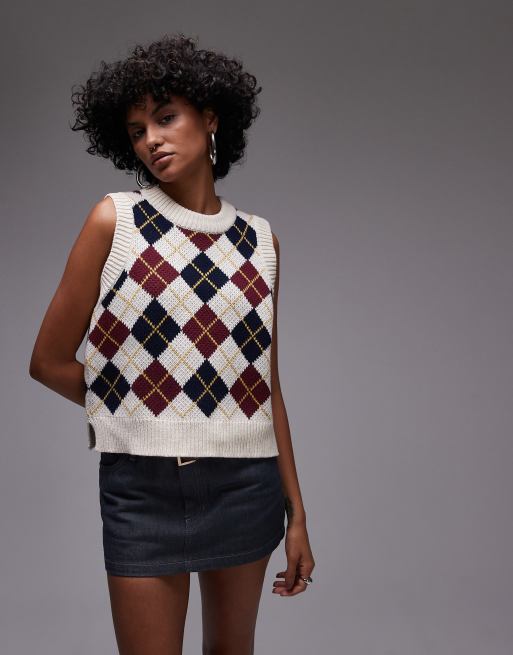 Levi's – Strickweste in Beige mit Rauten-Strickmuster im College-Stil