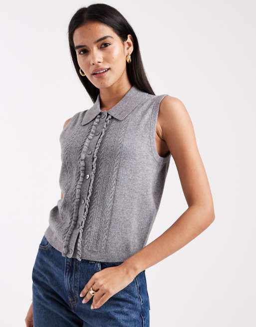 Levi's – Superweiche Strickweste in Grau mit Minirüschen