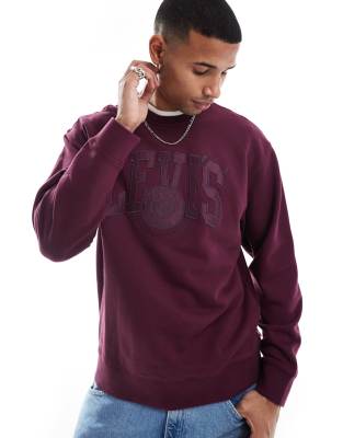 Levi's – Sweatshirt in Burgunderrot mit lockerem Schnitt und farblich abgestimmter College-Logoapplikation