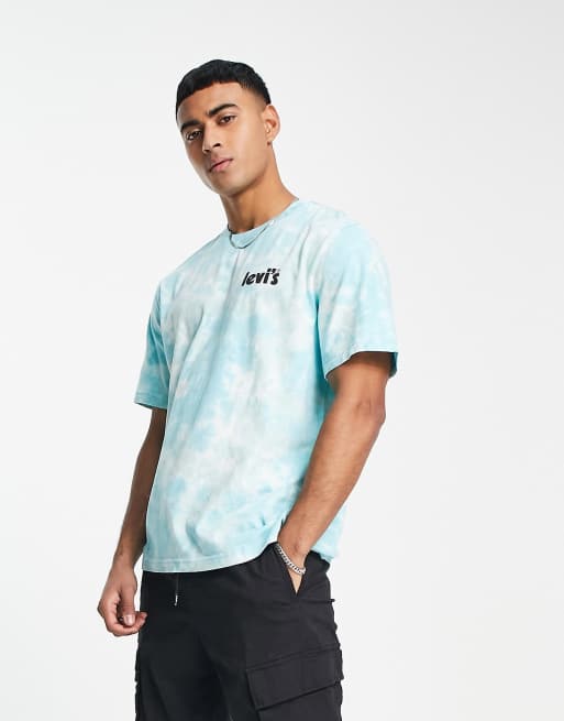 Levi's – T-Shirt in Blau mit Batikmuster und Poster-Logo