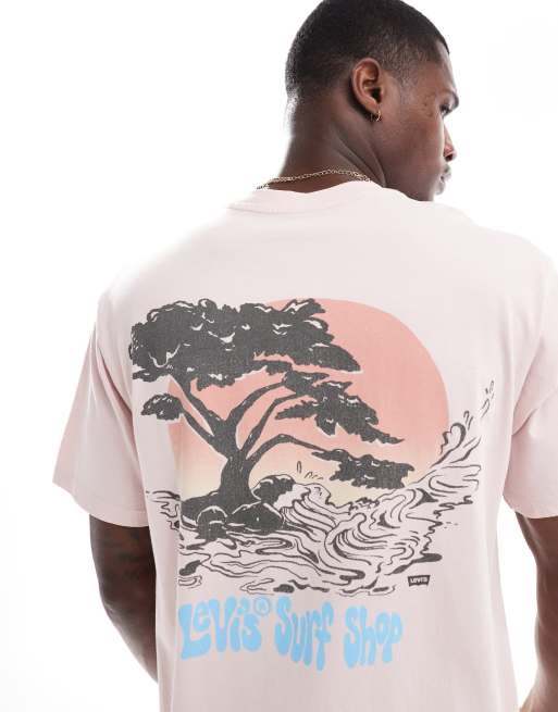 Levi's – T-Shirt in Rosa mit Surf-Print am Rücken