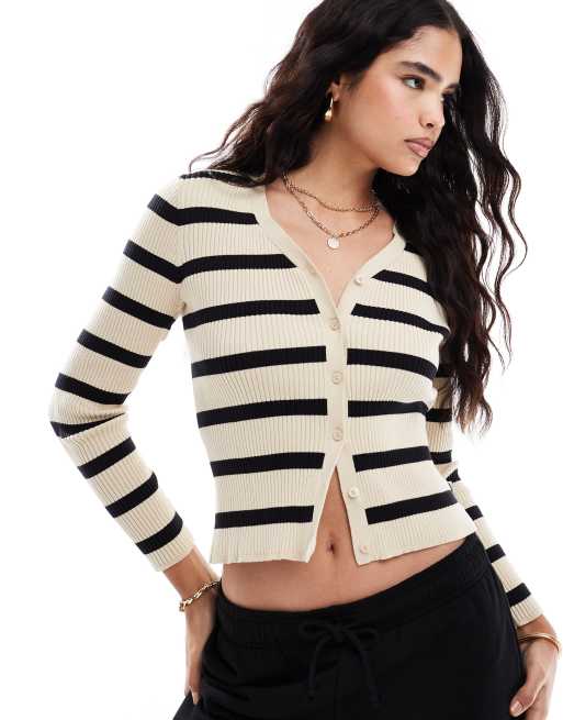 Levi's – Tulip – Strickjacke in Beige mit Streifenmuster und schmalem Schnitt