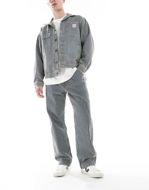 Levi's – Workwear Capsule 568 – Carpenter-Jeans in Mittelblau mit lockerem, geradem Schnitt und Railway-Streifen