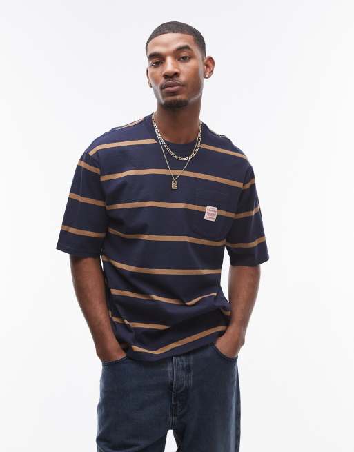 Levi's – Workwear Capsule – Gestreiftes T-Shirt in Marineblau/Beige mit Brusttasche, Logo-Aufnäher und lockerem Schnitt