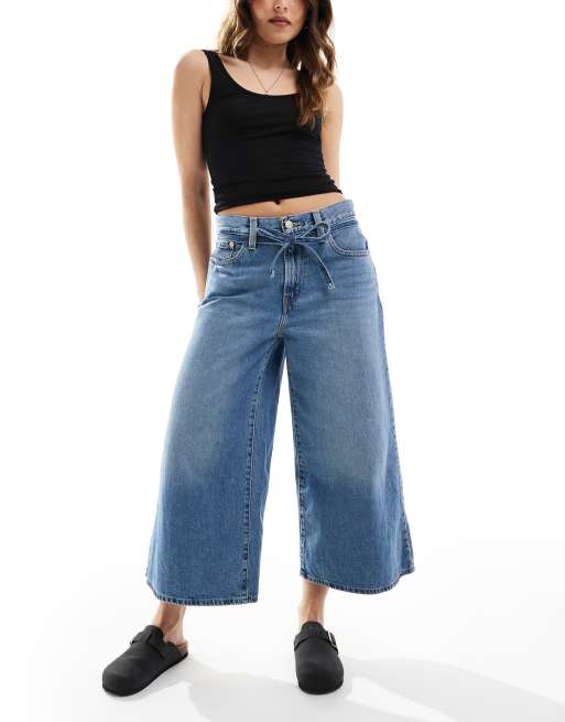 Levi's – XL-Culotte-Jeans in Mittelblau mit Bindedetail