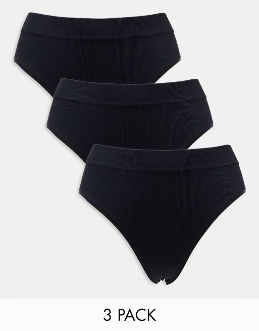 Lindex – 3er-Pack nahtlose brasilianische Slips in geripptem Schwarz mit hohem Bund