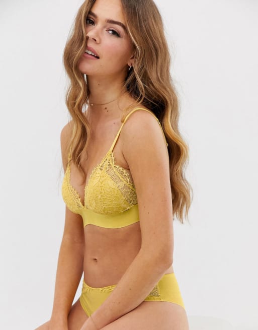 Lindex – Ella M Nora – Gelbes Set mit BH und Slip mit Wimpernspitze