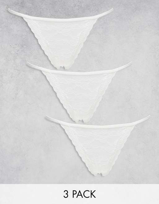 Lindex – Jenniann – 3er-Pack Tangas aus Spitze in Weiß