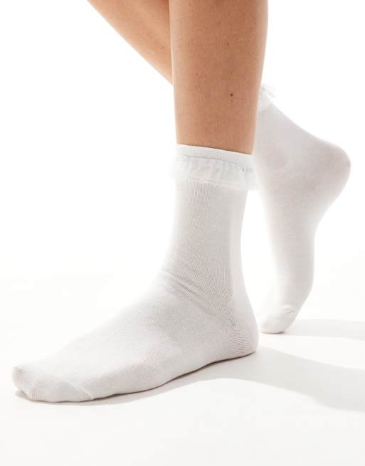 Lindex – Socken in Weiß mit Rüschensaum aus Organza