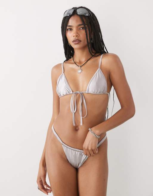 Lioness – Cindy – Geraffte Bikinihose in Metallic-Silber, Kombiteil