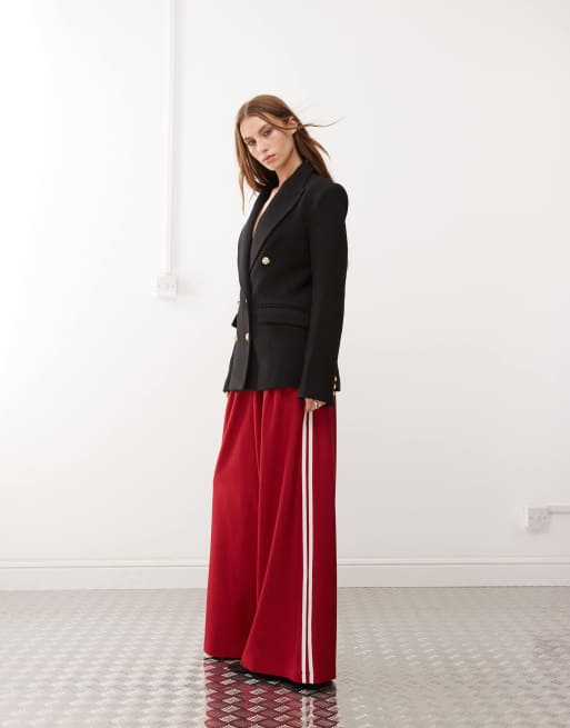 Lioness – Elegante Hose in Rot mit Bundfalten, seitlichen Streifen und weitem Bein