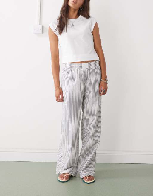 Lioness – Hose aus Popeline mit Streifen in Blau und Creme mit Boxershorts-Bund und weitem Bein