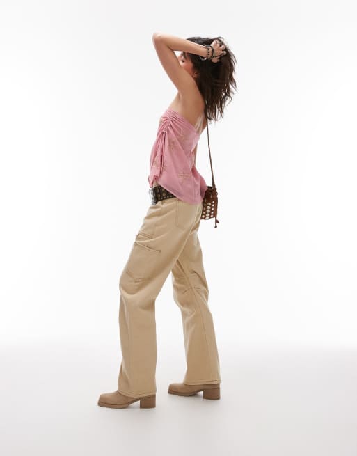 Lioness – Miami – Jeans in verwaschenem Ecru mit weitem Bein, niedrigem Bund und Taschendetail