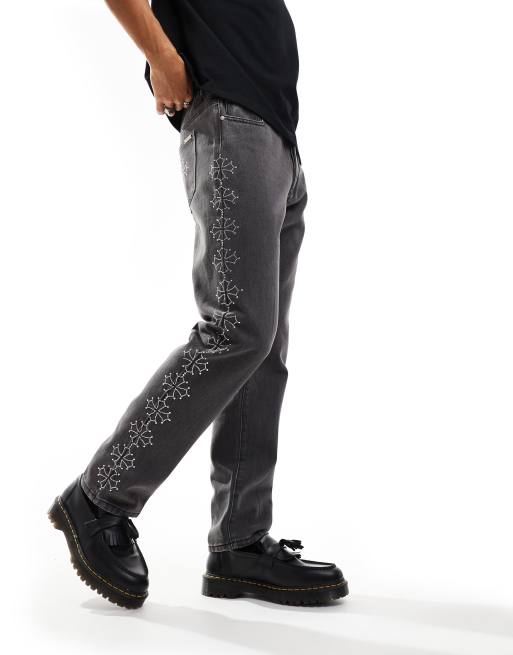 Liquor N Poker – Jeans in Schwarz mit Strass-Verzierung an der Seite