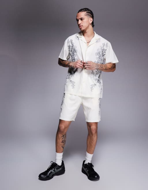 Liquor N Poker – Shorts in Wollweiß mit königlichem Emblem-Print, Kombiteil