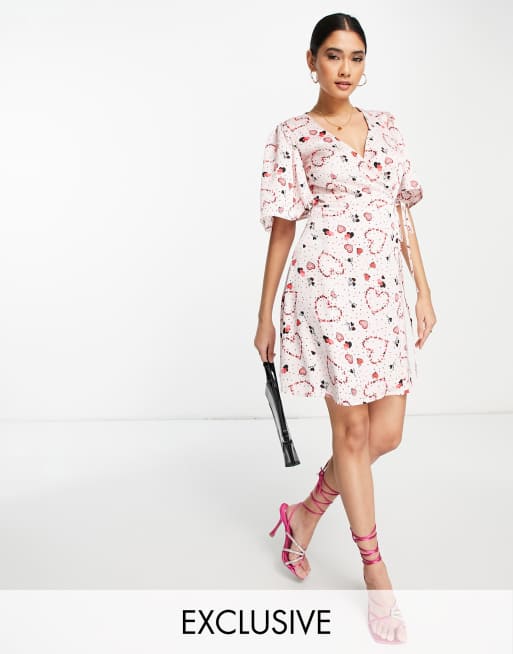 Liquorish – Mini-Wickelkleid in Creme mit Herzmuster, exklusiv bei ASOS
