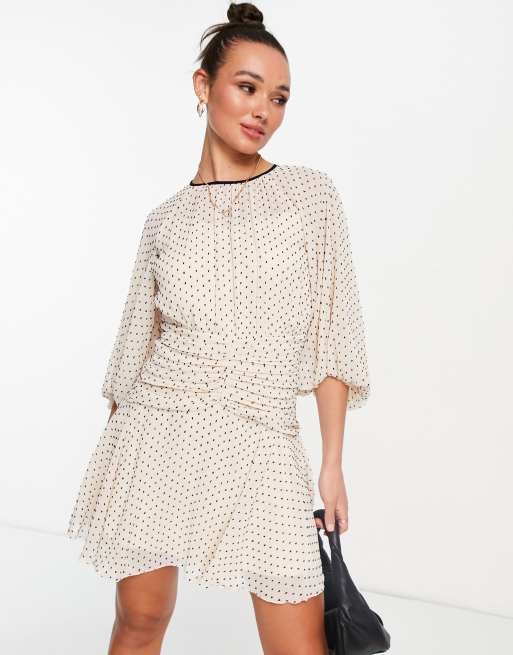 Little Mistress – Gerafftes Minikleid in Cremeweiß mit Punktemuster