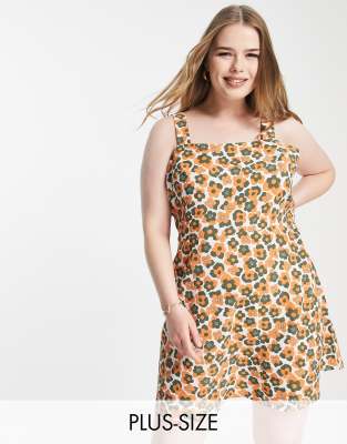 Lola May Plus – Mini-Trägerkleid mit Retro-Blumenmuster in Orange