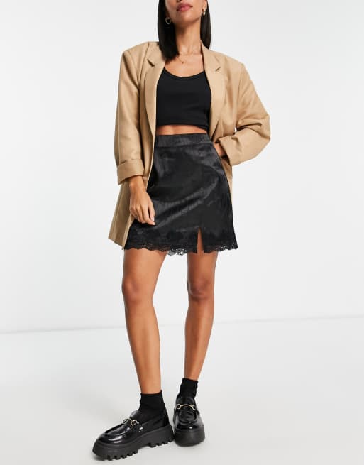 Lola May – Minirock aus Satin mit Jacquard-Blumenmuster und Spitzenbesatz