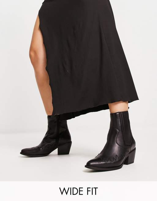 London Rebel Leather Wide Fit – Ankle-Boots im Westernstil in Schwarz
