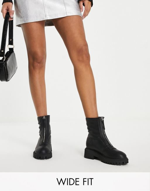 London Rebel – Stiefel in Schwarz mit dicker Sohle und Reißverschluss vorne, weite Passform