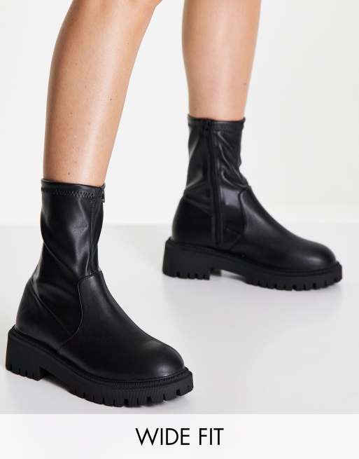 London Rebel – Wadenhohe Chelsea-Stiefel in Schwarz mit dicker Sohle, weite Passform