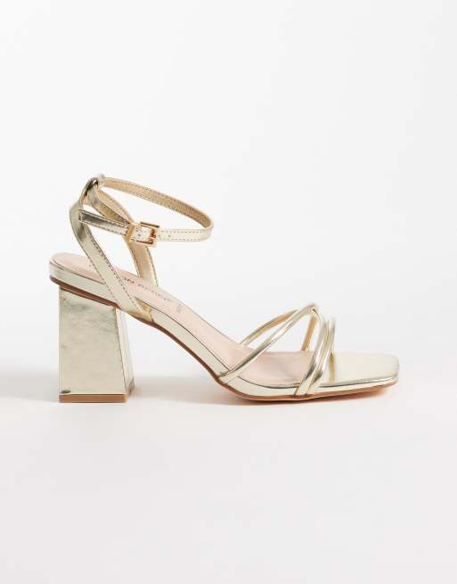 London Rebel Wide Fit – Asg – Riemchen-Sandaletten in Gold mit mittelhohem Blockabsatz