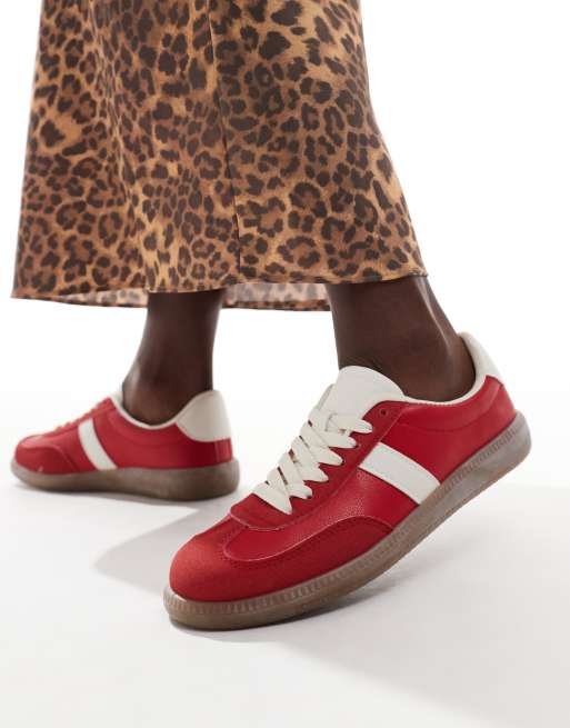 London Rebel Wide Fit – Cally – Sneaker in Rot mit Gummisohle, weite Passform