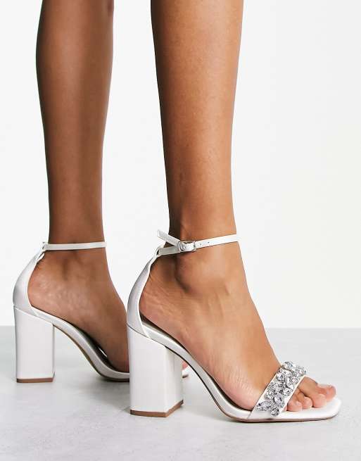 London Rebel – Elfenbeinfarbige, verzierte Hochzeitssandalen mit Blockabsätzen