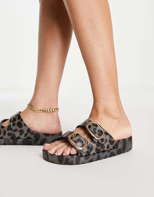 London Rebel – Sandalen mit zwei Schnallen, Fußbett und Leopardenmuster