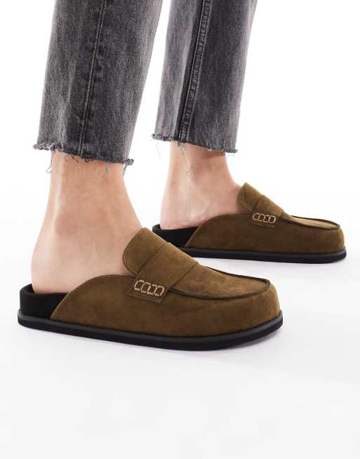 London Rebel – Violet – Slip-on-Mules in Olivgrün aus Wildlederimitat