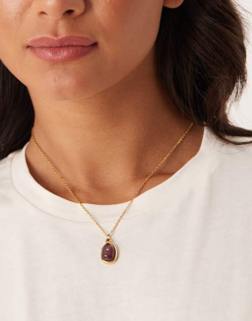 Lost Souls – Halskette aus Edelstahl mit 18-Karat-Vergoldung und Anhänger mit violettem Stein