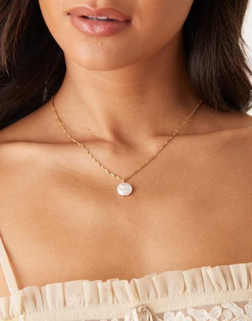 Lost Souls – Halskette aus Edelstahl mit 18-Karat-Vergoldung und flachem Perlenanhänger