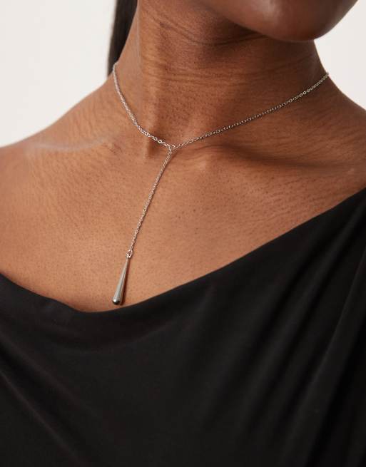 Lost Souls – Silberfarbene Lasso-Halskette aus Edelstahl mit Tropfenanhänger in geschmolzener Optik