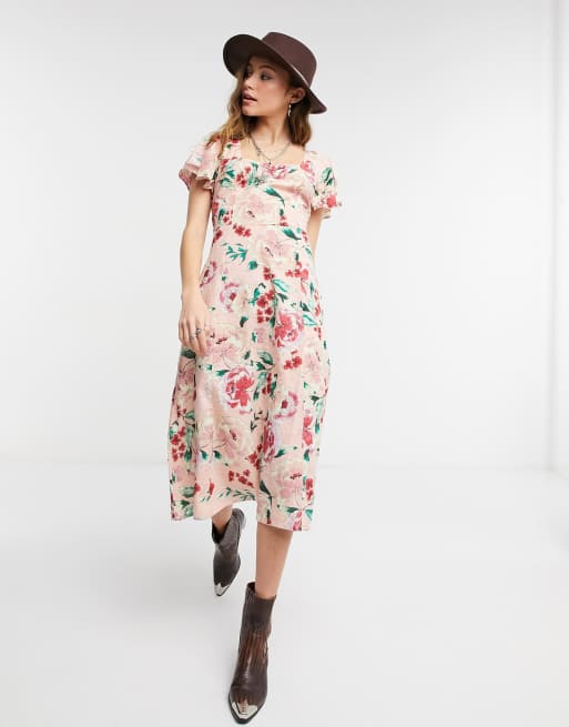 Lottie And Holly – Rosa Midi-Freizeitkleid mit Blumenmuster