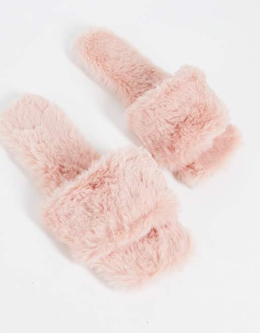 Loungeable – Flauschige, rosa Slipper mit eckiger Zehenpartie