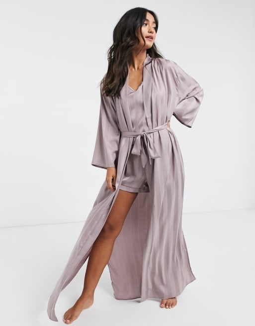 Loungeable – Gestreifter Jacquard-Pyjama aus Satin in Nerzfarben