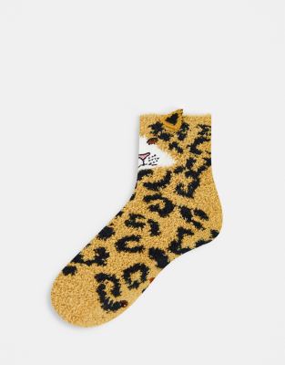 Loungeable – Kuschelige Socken mit Leopardenmuster in einer Weihnachtsgeschenkbox