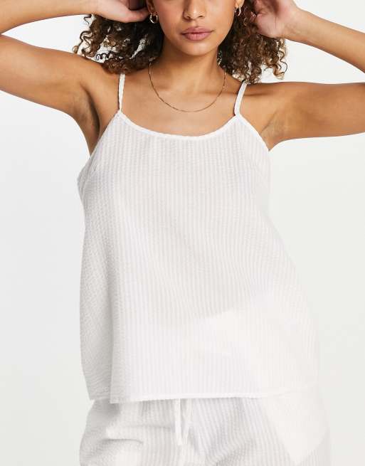 Loungeable – Mix and Match – Seersucker-Pyjama-Camisole in Weiß