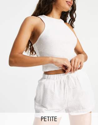 Loungeable Petite – Mix and Match – Pyjama-Shorts aus Seersucker in Weiß