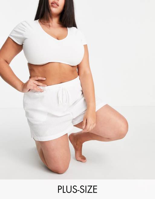 Loungeable Plus – Mix and Match – Pyjama-Shorts aus Seersucker in Weiß