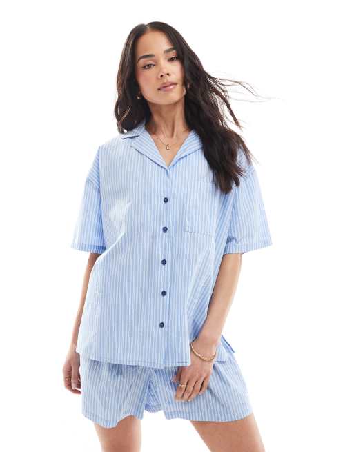 Loungeable – Traditionelles Web-Set in Blau mit kurzärmligem Oberteil und Shorts