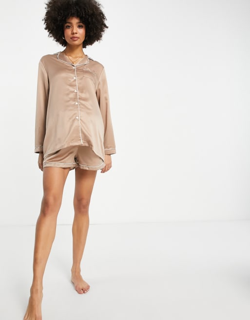 Loungeable – Umstandsmode – Satin-Pyjama in Mokka