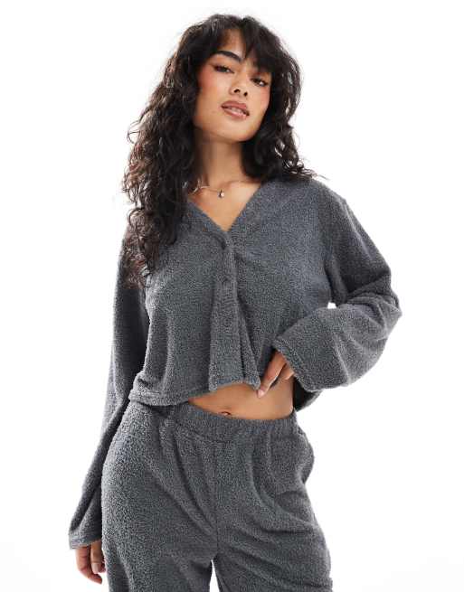 Loungeable – Weiche, flauschige Strickjacke in Grau