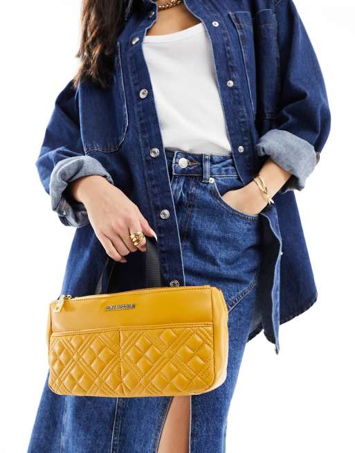Love Moschino – Gesteppte Henkeltasche in Senfgelb