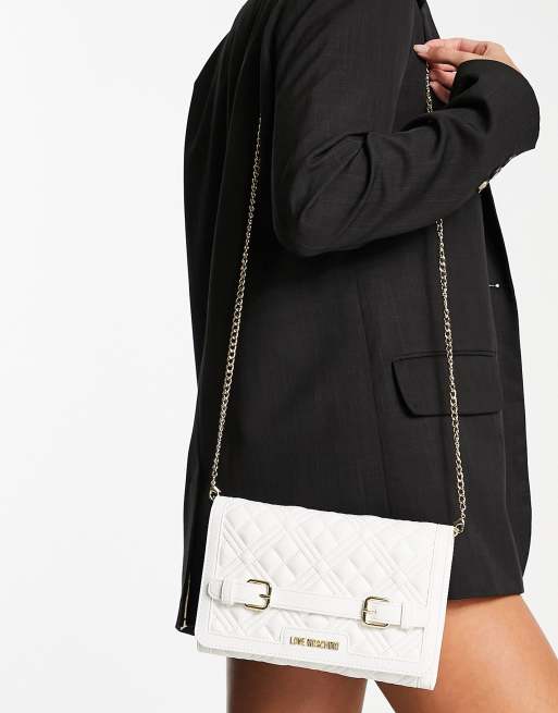 Love Moschino – Gesteppte Schultertasche in Weiß