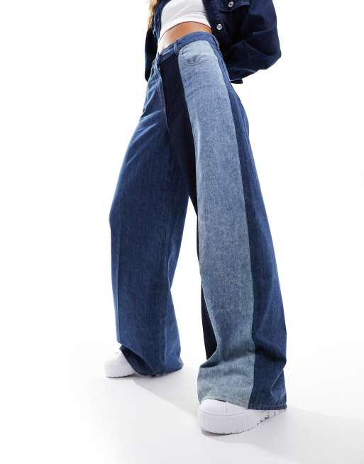 Love Moschino – Jeans in Blau mit weitem Bein und hohem Bund und Streifendesign